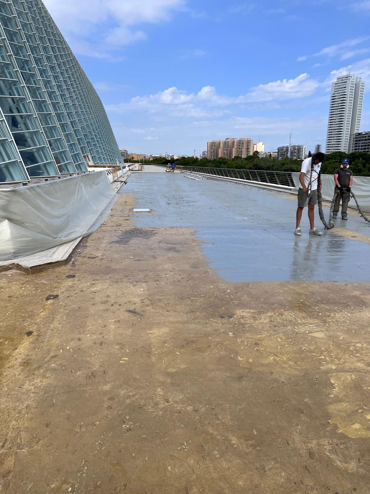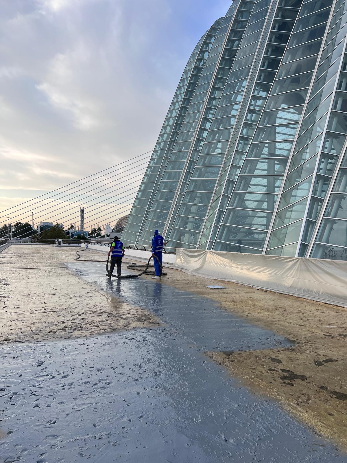 Impermeabilización con poliurea proyectada en Ciudad de las Artes y las Ciencias